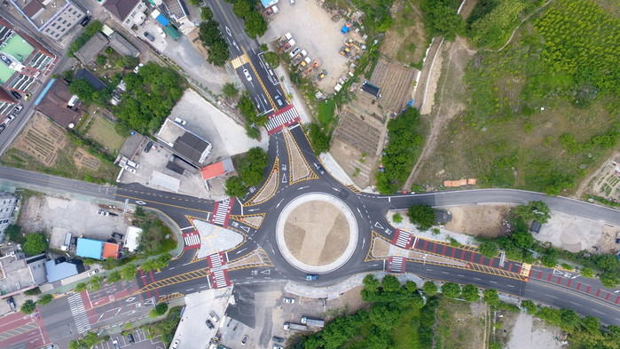 특히 회전교차로 내 교통섬에는 야간에도 안전하게 운전할 수 있도록 발광형표지판 및 LED시선유도 조명시설을 설치해 야간 교통사고 예방효과 및 도시미관을 최대한 살렸다.