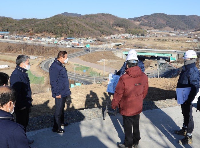 이날 방문에서 조 군수는 군 건설교통과장, 칠북면장 등 관계공무원들과 공사현장을 찾아 공사 감리단장, 현장소장 등 관계자로부터 사업 진행 현황을 청취하고 진행사항을 점검했다.