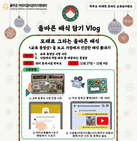 ‘올바른 배식 담기 Vlog’이벤트는 11월 27일부터 12월 4일까지 진행했으며, 등록시설과 학부모가 적극 참여했다.