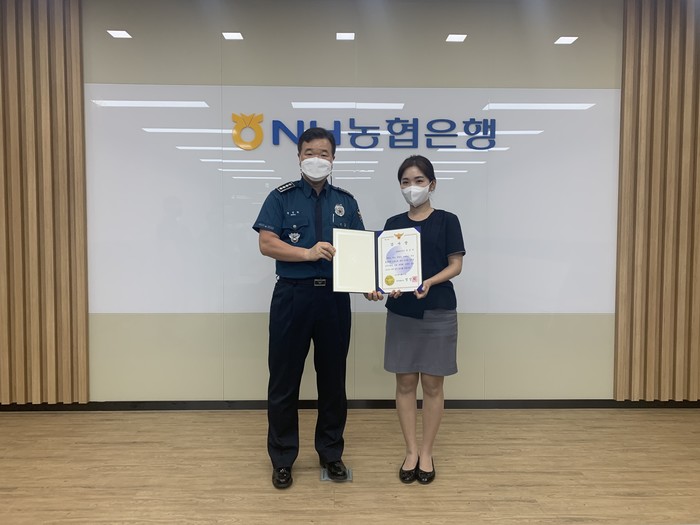 경찰관계자에 따르면 지난 6. 14.(월) 직원 정은지는 방문 고객이 현금 1,980만원을 출금하려 하자 이를 수상하게 여기고 보이스피싱이 의심된다는 설명을 한 후 즉시 경찰에 신고하여 피해를 예방하였다.