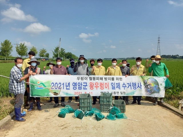 또한, 군은 11일 영암군 시종면 만수리 일원의 왕우렁이가 투입된 농지와 용·배수로에서 우렁이생산자 군 연합회, 농업인, 공무원 등 약 30여 명이 참석한 가운데 우렁이, 우렁이알 약 3.6t을 수거했다.