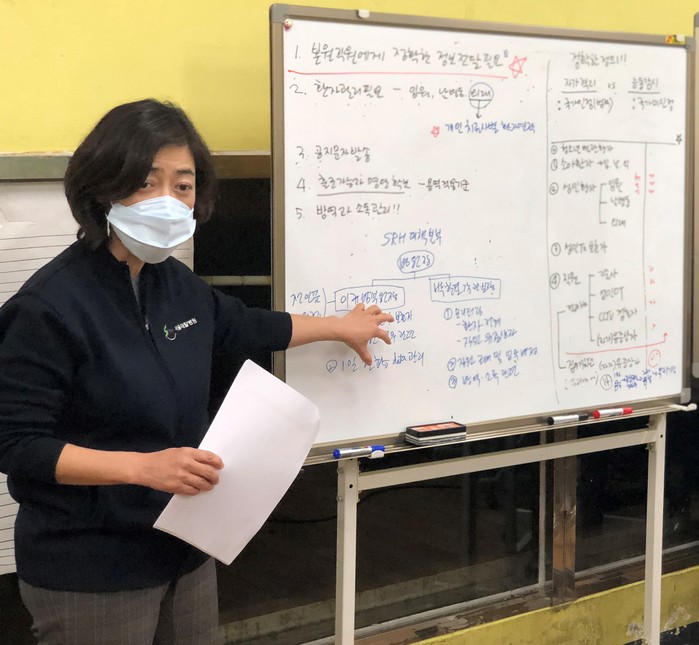 ▲ 이지선 원장이 서울시 대책단 회의에서 대응 조치에 대해 설명하고 있다. (사진제공=은평구청) |