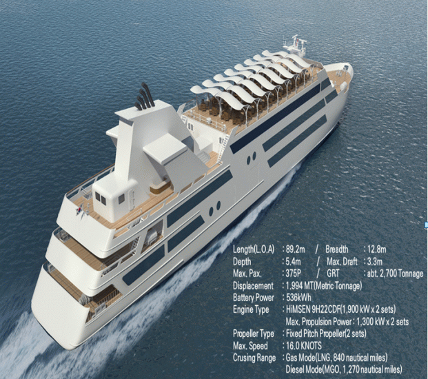 이번에 건조되는 선박은 국내 최초로 ▲이중연료(DF) 엔진 시스템 ▲직류 그리드(DC Grid)기반 전기추진 시스템 ▲통합제어 시스템 ▲스마트솔루션 등 4가지 핵심 정보통신기술(ICT) 융합 기술이 적용된다.