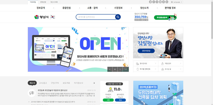 우선 대표포털 메인화면의 추가된 주요 기능은 양산시보 및 양산톡톡을 전면 배치해 양산소식을 보다 빠르게 접할 수 있고, 행사달력을 통해 양산시 전체 행사를 한 눈에 찾아볼 수 있게 했다.