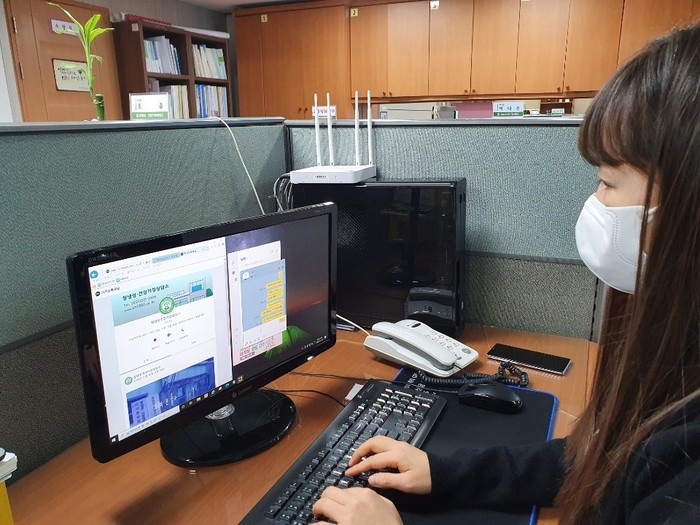 | ▲ 창녕성건강가정상담소에서 온라인상담을 진행하고 있는 모습이다. |