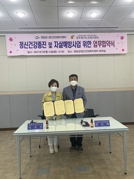 | ▲ 영암군 정신건강복지센터, 정우재가노인복지센터와 정신건강증진 및 자살예방사업 위한 업무협약 / 사진=영암군 제공 |