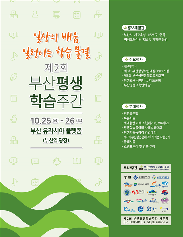 이 행사는 부산 인재 평생 교육진흥원에서 주최.주관하고, 부산시교육청과 부산시, 16개 구.군이 참여, 후원 한다.