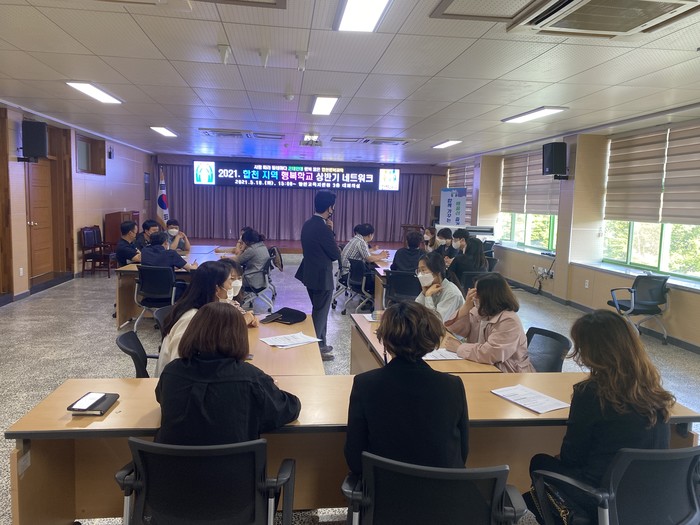 합천교육지원청(교육장 정종화)은 5월 18일(화) 학교와 지역이 함께, 학교 혁신을 너머 미래교육이라는 주제로 코로나 19 상황 학교 철학을 공유하는 2021. 합천 지역 행복학교 1차 네트워크를 개최하였다.