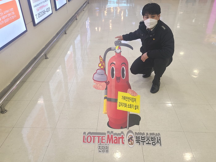 이를 위해 울산 북부소방서는 관내 대형마트에 주택용 소방시설홍보용 트릭아트를 설치했다.