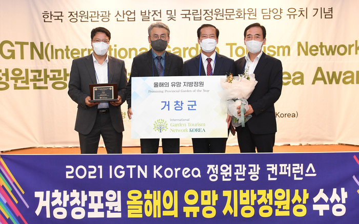 거창군은 지난 28일 담양군에서 개최된 ‘2021 IGTN Korea 정원관광 컨퍼런스’에서 거창창포원이 ‘올해의 유망 지방정원 특별상’을 수상하는 영예를 안았다고 밝혔다.