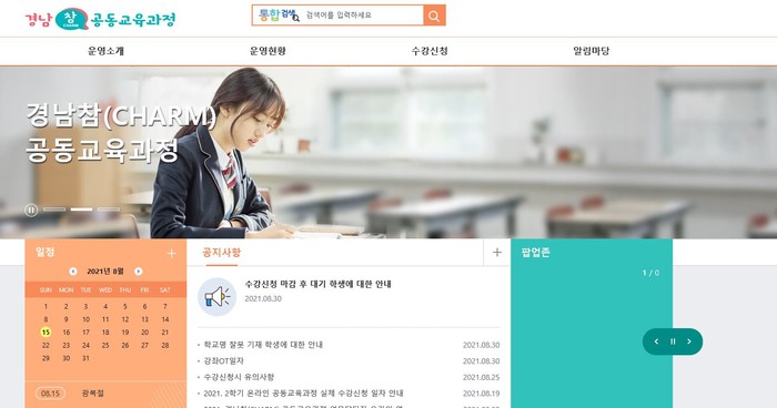 온라인 공동교육과정은 2학기 경남 도내 25개 과목, 49개 강좌가 개설되었고, 720여 명의 학생이 참여한다. 2021학년도 2학기부터는 경남참(CHARM) 공동교육과정 누리집 구축을 통하여 학생이 직접 과목을 선택·수강신청하며, 수강신청 취합에 대한 교사 업무를 경감하고 있다.