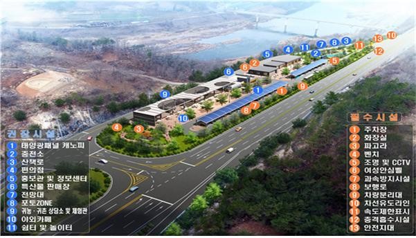 이번에 조성할 스마트 복합쉼터는 국도변에 졸음쉼터, 지역특산물 판매장, 지역홍보관 등을 설치하여 도로이용자의 편의와 지역경제 활성화를 위해 정부와 지자체가 협력하여 추진하는 사업이다.