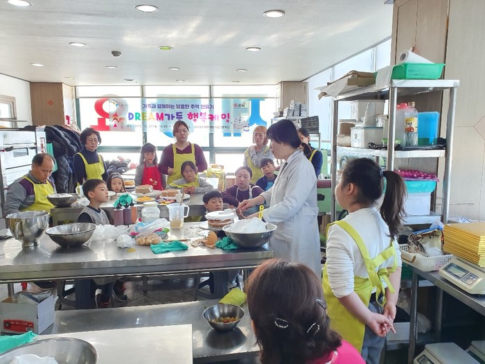 김해시 드림스타트는 지난 7일 김해시 관내 제과제빵학원 3곳에서 드림스타트 아동과 양육자(46세대 100명)가 함께하는 “DREAM가득 행복케이크” 만들기 프로그램을 진행하였다.