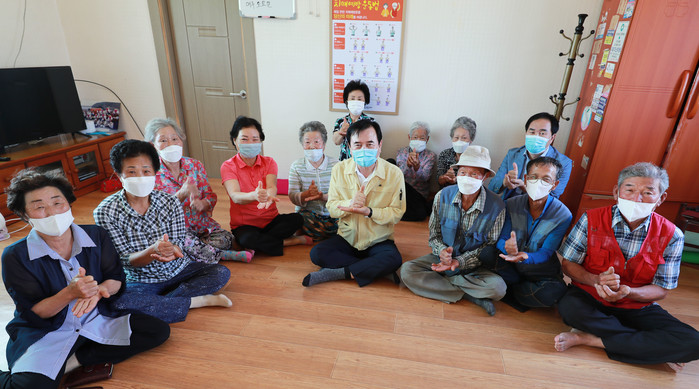 서춘수 군수는 이날 지역의 경·노모당을 직접 찾아 그동안 코로나19로 답답했던 어르신들을 위로 격려하고 애로사항 등을 경청했다.
