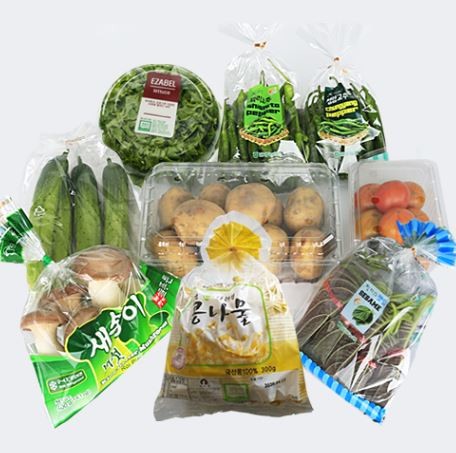 적인 가격에 판매하고 있는 농산물 및 가공식품 세트이다.