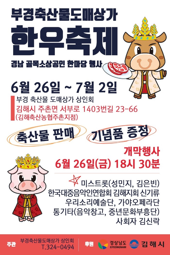 내외동 무로거리, 주촌 부경축산물도매시장, 진영패션아울렛거리, 율하카페거리, 오래뜰먹자골목(인제대 앞) 등 5개소는 26일부터 7월 2일까지, 한림가구거리는 다음달 3일부터 9일까지 일주일간 행사를 진행한다.