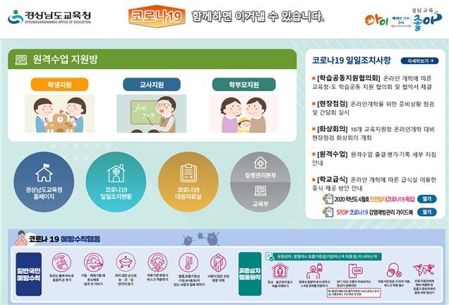 이상락 교육과정과장은“온라인 개학에 따른 학생·교사·학부모의 혼란을 최소화하고자 원격수업 지원방을 개설했다. 이 공간을 통해 다양한 자료를 탑재하여 원격수업이 차질없이 이뤄지도록 적극 노력하겠다”고 말했다.