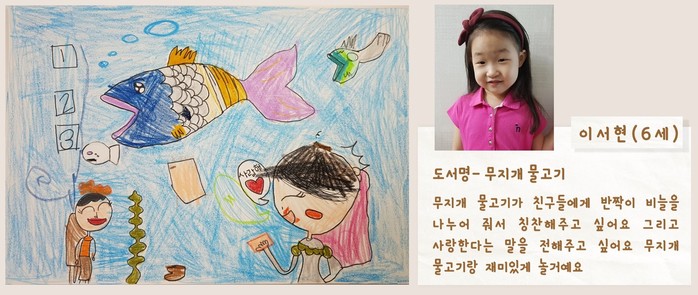 ‘독후화 그리기’는 외부 활동이 어려운 가정의 유아와 부모가 가정에서 그림책을 읽고 나눈 생각을 다양한 재료를 이용해 직접 그림으로 표현해보는 활동이다. 그림책에 대한 유아의 관심과 흥미를 자신만의 생각과 상상력으로 자유롭게 그린 작품 40여 점이 센터 홈페이지 에 온라인 전시 중이다.
