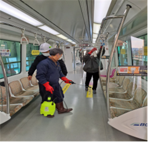 경전철은 매일 운행 전 차량 내부 전체를 소독하고 특히 시민들의 접촉이 많은 손잡이와 의자 등은 회차 시마다 소독이 이뤄진다. 역사 내부와 각종 손잡이, 발매기 버튼, 게이트 등 고객 접촉 주요 시설물에 대해서도 매일 4회 이상 철저히 방역한다.