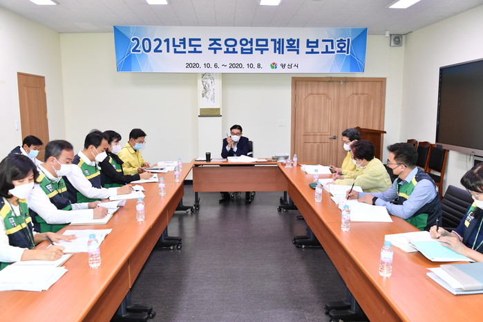 양산시(시장 김일권)가 지난 6일부터 8일까지 3일간 책임관, 부서장이 참석한 가운데 ‘2021년 신규시책 및 시정 주요업무 보고회’를 열고 시정 발전에 대한 심도 있는 의견 교환의 시간을 가졌다.