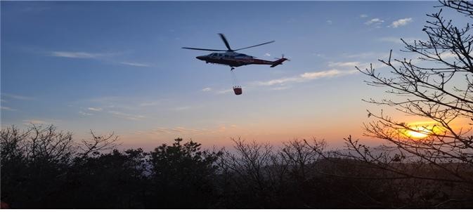 오전 6시시 현재 주불을 진화하였고, 7시20분경 부산시 소방헬기 2대, 산림청헬기 1대를 투입해 바위틈에 남아 있는 잔불까지 완전 진화하였으며, 인명피해는 없는 것으로 확인됐다.