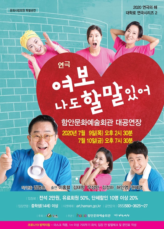 오는 7월 9일 목요일 오후 2시 30분, 10일 금요일 오후 7시 30분 총 2회에 걸쳐 중·장년층의 삶의 이야기와 애환을 다룬 대학로 연극 ‘여보 나도 할 말 있어’가 함안문화예술회관 대공연장 무대에 오른다.