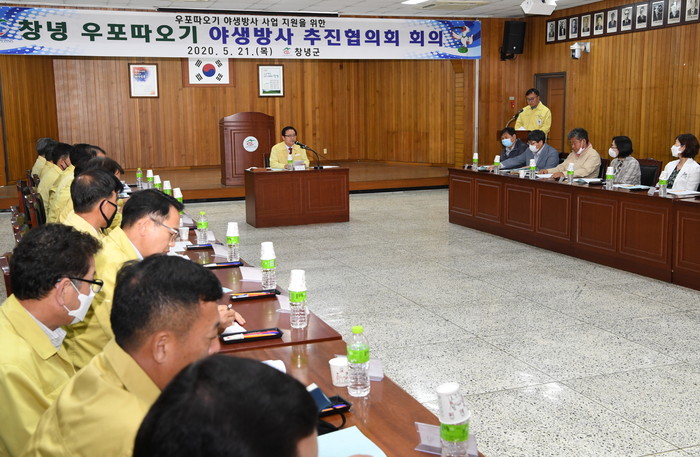 창녕군(군수 한정우)은 지난 21일 제2회 우포따오기 야생방사를 앞두고 창녕 우포따오기 야생방사 추진협의회 회의를 창녕군청 대회의실에서 개최했다고 밝혔다.