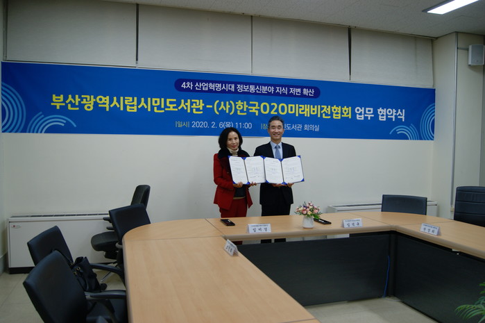 부산광역시립시민도서관(관장 임석규)은 지난 6일 오전 11시 시민도서관회의실에서 (사)한국O2O미래비전협회(협회장 임미경)와‘4차 산업혁명 시대 정보통신분야 지식 저변 확산을 위한 업무협약’을 체결했다고 7일 밝혔다.