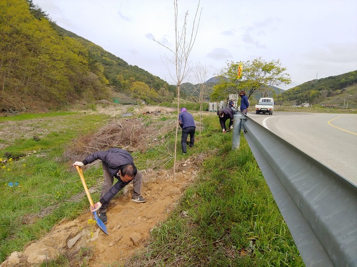 | 조서마을 도로변 이팝나무를 심고 있다. |