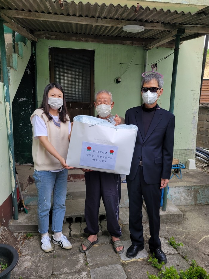 이번 꾸러미 전달은 그동안 해오던 시각장애인 어버이날 맞이 행사의 일환으로 코로나19로 인해 소외된 시각장애인 가정에 선물꾸러미를 만들어 각 가정에 합천군지회직원들이 방문하여 선물꾸러미를 배부하고 카네이션을 달아드리는 행사로 코로나19 방역수칙을 준수하여 실시했다.