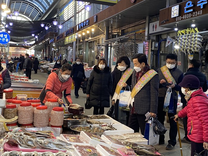 이날 행사는 코로나19의 확산과 장기화에 따른 매출감소로 고통을 겪고 있는 전통시장 상인들의 어려움을 공감하고, 전통시장 활성화를 위해 이루어졌다.