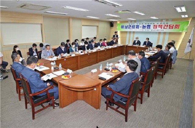[해남=정찬남 기자] 전남 해남군의회(의장 김병덕)는 지난 14일 오후에 농협중앙회 해남군지부 회의실에서 의원과 각 회원농협 조합장 간 열린 정책 간담회를 통해 농정 발전을 위해 허심탄회한 의견 및 건의 사항을 청취했다