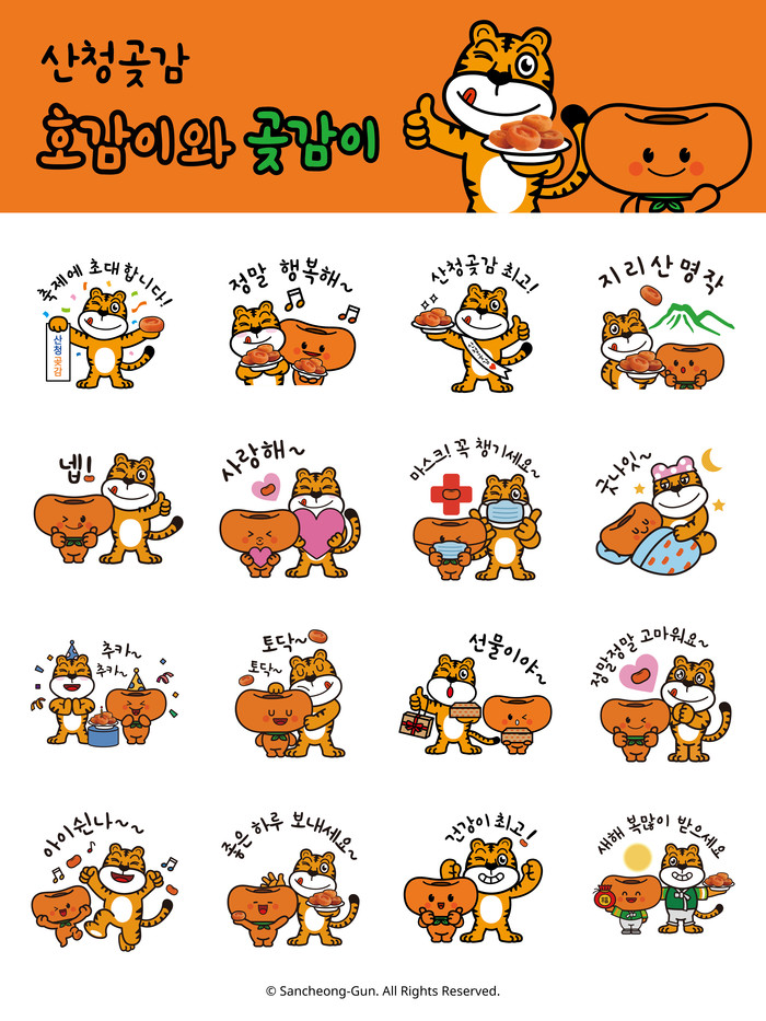 군 관계자는 “우리나라 전통 주전부리인 곶감의 맛과 역사적 가치를 젊은 세대에도 적극적으로 알리기 위해 이모티콘을 만들게 됐다”며 “앞으로도 다양한 계층이 산청곶감을 더 많이 접할 수 있도록 다양한 홍보콘텐츠를 개발, SNS 마케팅을 강화해 나가겠다”고 밝혔다.