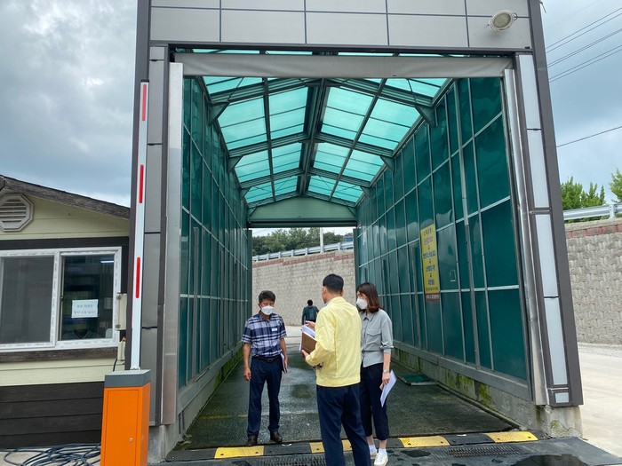10일 이미화 부군수는 의령군 용덕면 의합대로에 위치한 의령군 거점소독시설을 방문해 거점소독시설 운영실태 및 ASF 방역대책을 점검하고 철저한 방역대책수립을 주문했다.