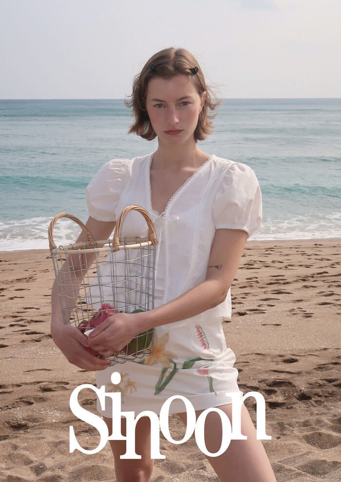 ‘썸머 페르소나(Summer Persona)’를 주제로 한 이번 컬렉션은 부서지는 파도, 푸르름이 가득한 풀숲과 싱그러운 과일 등 여름에 마주할 수 있는 다양한 풍경에서 영감을 받았다. 시어한 소재의 레이어드 블라우스부터 나비를 연상시키는 프릴 자수 티셔츠, 플라워 패턴의 리본 슬리브리스와 원피스를 비롯해 스윔웨어, 스크런치까지 시눈만의 로맨틱한 무드와 편안함이 느껴지는 다양한 아이템을 구성했다.
