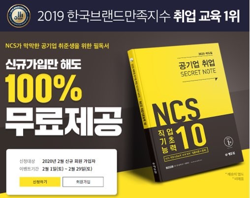 [시민일보 = 황혜빈 기자] 종합교육기업 에듀윌(대표 박명규)이 NCS가 막막한 공기업 취준생들을 위해 만들어낸 ‘NCS 직업기초능력 10’ 교재를 신규가입만 해도 100% 무료로 제공하는 이벤트를 진행한다고 밝혔다.