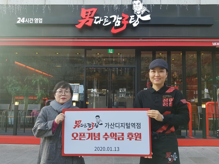 ‘남다른감자탕’ 가산디지털역점 김종진, 신미숙 대표는 지역에 도움이 필요한 이웃을 돕기 위해 매장 오픈 후 3일 동안의 순수익금을 가산동주민센터에 기부하였다.