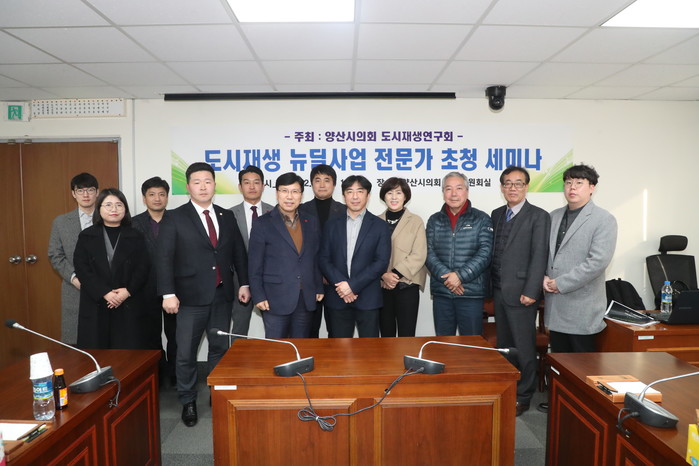 양산시의회 의원연구단체 ‘도시재생연구회’는 지난6일 2시부터 2시간 동안 3층 특별위원회실에서 “도시재생 뉴딜사업 전문가 초청 세미나”를 개최하였다.