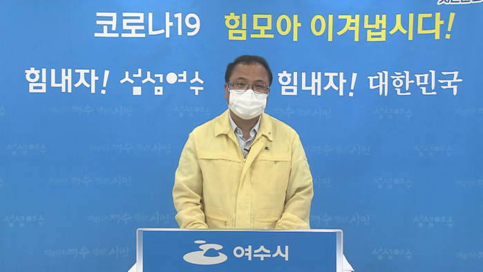 | ▲ 박현식 여수시부시장은 20일 영상 브리핑을 통해 여천초 병설유치원 집단감염 발생에 따라 7월 22일 0시부터 28일 24시까지 일주일간 사회적거리두기 단계를 3단계로 격상한다고 밝혔다. (출처=여수시청) |