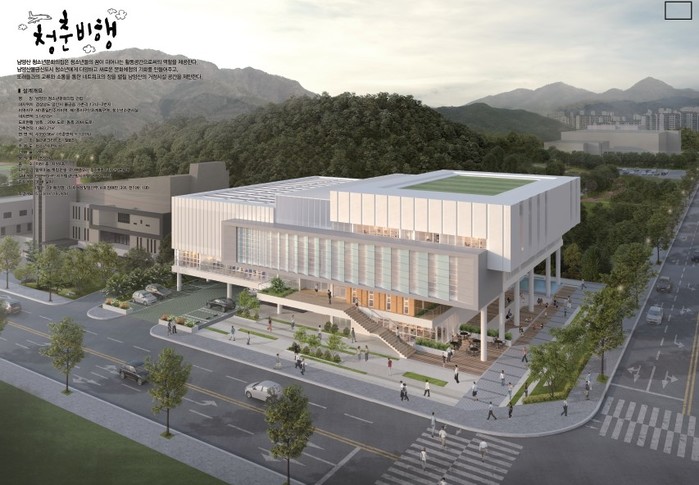 양산시는 지난달 29일 ‘남양산청소년문화의집’ 건립 심사위원회를 열어 양산 소재 Y사와 H사가 공동으로 제출한 ‘신도시 내 청소년들의 꿈이 피어나는 활동공간을 제공함과 동시에 다양하고 새로운 문화체험의 기회를 만들어 또래들과의 교류와 소통을 통한 네크워크의 장을 만드는 공간속에서 다양한 꿈과 비전을 만들 수 있다’라는 주제를 지닌 ‘청춘비행’작품을 당선작으로 선정했다.