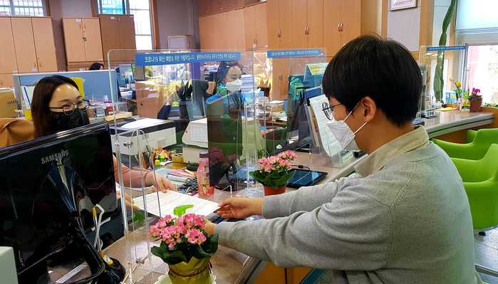 한편 산청군 민원실은 방문객에게 휴대용 소독티슈를 배부해 코로나19 예방에 나서는가 하면 화훼농가 돕기 화분 구매 등 지역경제 살리기에도 앞장서고 있다.