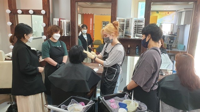 | ▲ 강진군 희망문화확교, 헤어 컨설팅 염색과정 실습교육 / 사진=강진군 제공 |