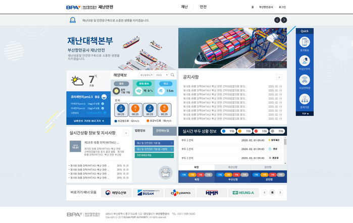 ‘안전한 부산항’ 구현에 매진하는 부산항만공사(BPA, 사장 남기찬)가 지난해 안전보건경영시스템(KOSHA-MS) 인증을 획득한 데 이어 부산항 재난안전관리시스템 구축에 나섰다.