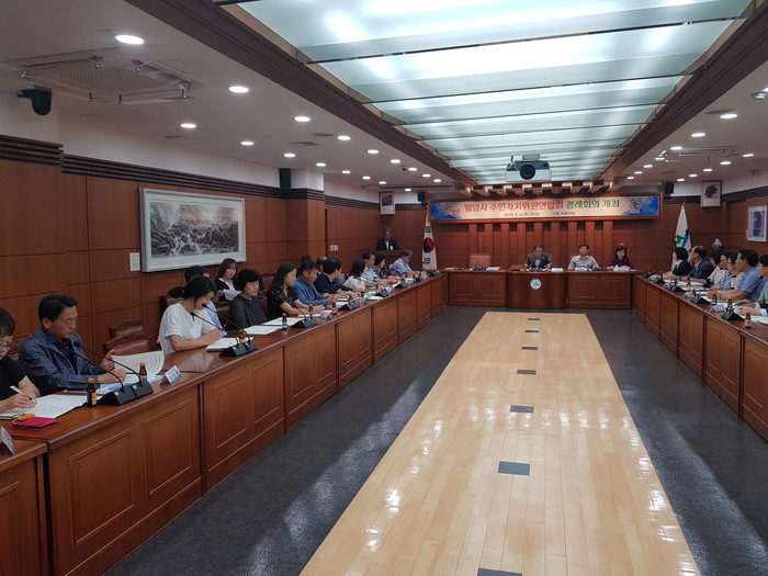밀양시 주민자치위원연합회는 읍면동 주민자치위원회와 밀양시가 유기적으로 소통하며 주민의견이 반영된 주민자치 사업을 추진하고, 위원회 간 정보공유로 주민자치의 빠른 정착과 발전을 위해 매분기 회의를 개최해 오고 있다.