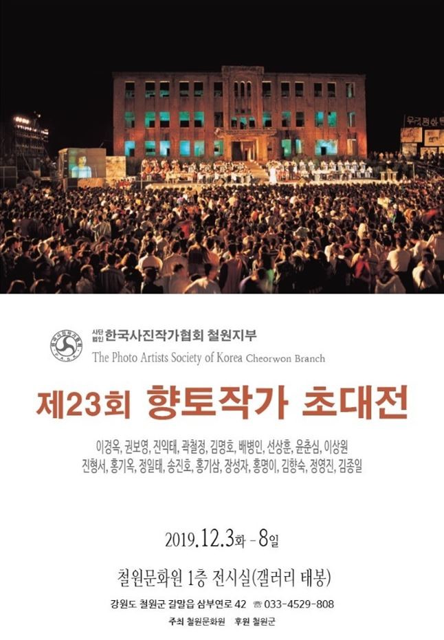 [시민일보 = 여영준 기자]철원문화원이 주최하고 철원군이 후원하는 '제23회 향토작가 초대전'이 3~8일 철원문화원 1층 전시실(갤러리 태봉)에서 열린다.
