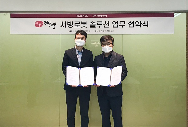 [시민일보 = 이승준] 외식업 프랜차이즈 업체'이비가짬뽕'은 지난 25일 서빙로봇 전문업체 'VD컴퍼니'와 미래 외식 로봇상용화 사업확대를 통한 가맹점 상생방안을 위해 이비가짬뽕 본사에서 서빙로봇솔루션 MOU를 체결했다고 밝혔다.