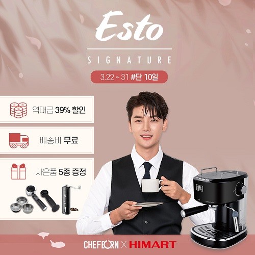 [시민일보 = 고수현] 봄을 맞이해 프리미엄 주방 가전 브랜드 쉐프본이 하이마트몰에서 에스토 시그니처 가정용 커피 머신을 3월 22일부터 단 10일간, 최대 39% 할인한다고 밝혔다.