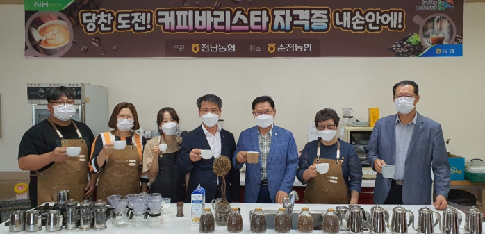 최근에는 여성농업인과 청년농업인을 대상으로 지난 6일부터 8회차에 걸쳐 순천농협 지역문화복지센터에서 바리스타자격증교육을 진행한 전남농협은 수강생 30명 전원이 커피바리스타 2급자격증을 취득하는 성과를 거두어 자기계발과 농외소득 창출의 기회를 마련하는 계기를 부여했다.