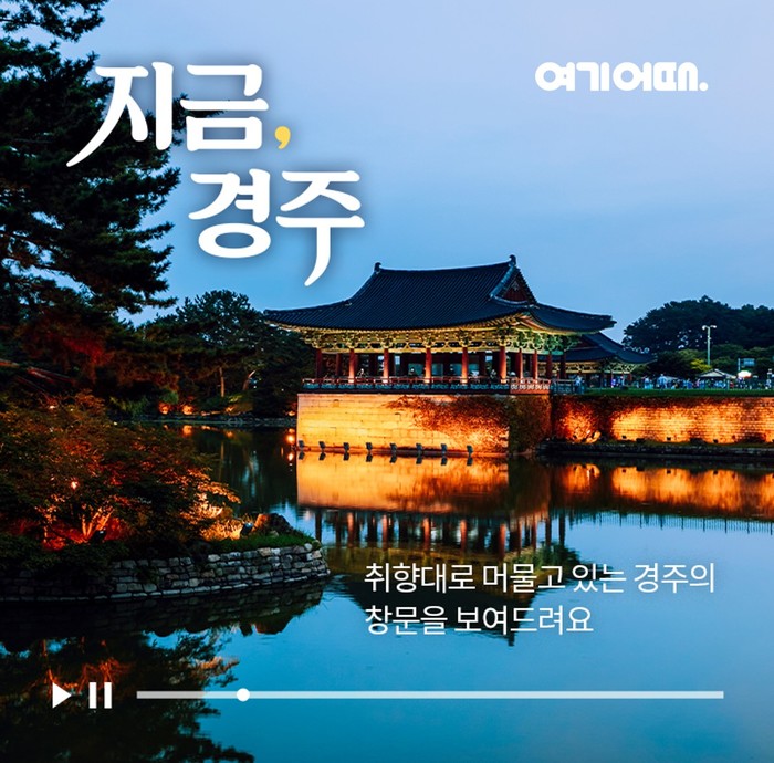 대한민국 종합 숙박·액티비티 플랫폼 여기어때(대표 정명훈)는 총 171개의 짧은 영상으로 구성한 ‘지금, 경주’를 발표했다. 지역을 대표하는 유명 숙소는 물론이고, 맛집과 액티비티 시설, 관광 명소 등 곳곳의 아름다움을 영상으로 담은 게 특징이다. ‘여행지의 창문을 연다’는 주제로 영상을 무작위 재생하며, 관련 상품 정보를 바로 탐색하려면 구매 페이지나 리뷰 페이지로 이동할 수 있다.