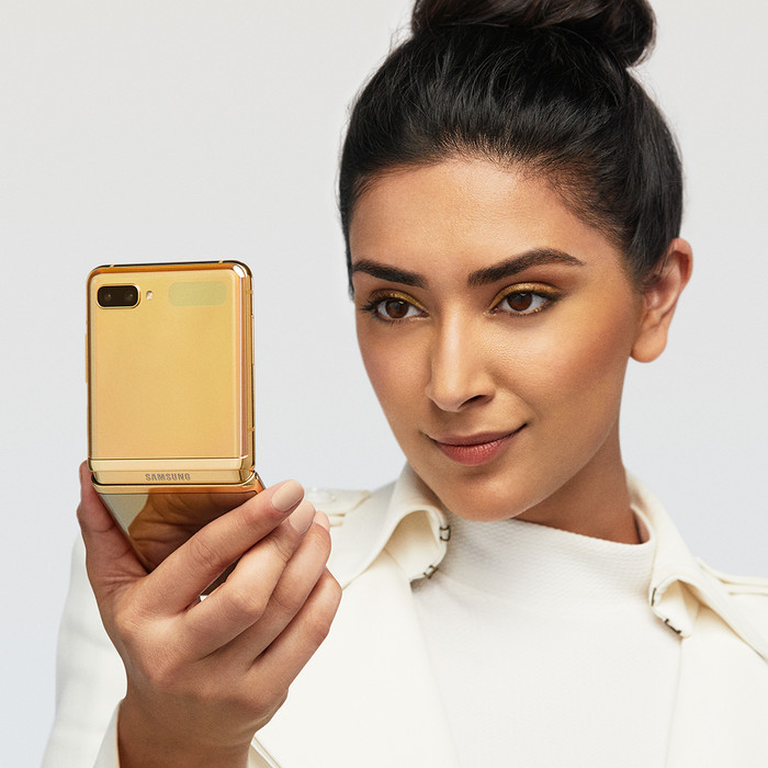 삼성전자에 따르면 '갤럭시 Z 플립' 미러 골드 색상은 골드 색상에 세련된 감각을 더해 우아한 프리미엄을 표현한 것이 특징이다.